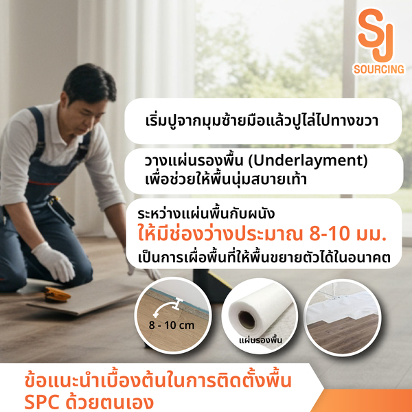 หากสนใจปูพื้น SPC แต่ไม่มั่นใจในการปูด้วยตัวเอง หรืออยากได้วัสดุปูพื้น SPC ที่คุณภาพดี ราคาไม่แพง ทางเรา S.J.Sourcing พร้อมยินดีให้บริการทุกท่านอย่างเต็มที่ค่ะ