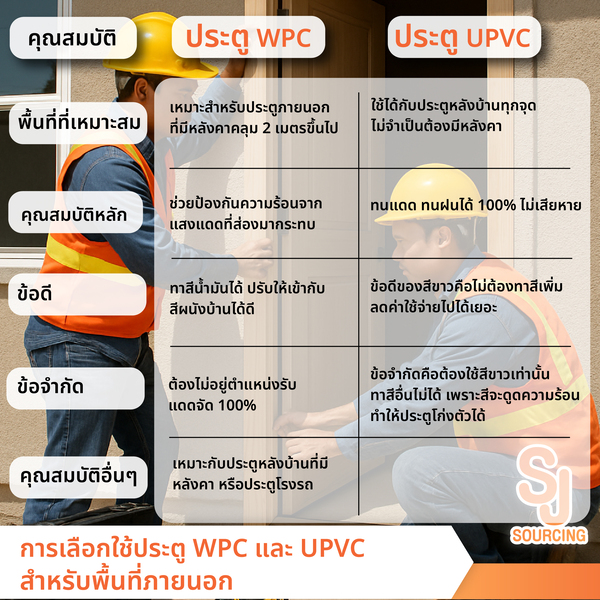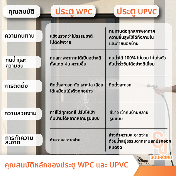 | หัวข้อเปรียบเทียบ | ประตู WPC | ประตู UPVC |