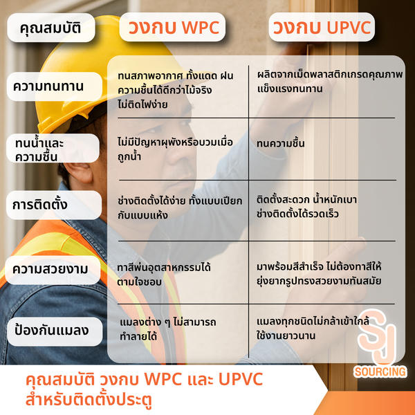ด้านการติดตั้ง ทั้งวงกบ WPC กับ UPVC ติดตั้งง่าย รวดเร็ว น้ำหนักไม่มาก ตัดแต่งได้ตามรูปทรง แต่วงกบ WPC ต้องทาสีให้สวย ส่วนวงกบ UPVC เป็นสีสำเร็จพร้อมใช้งานได้เลย