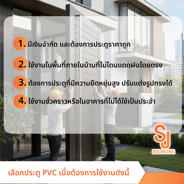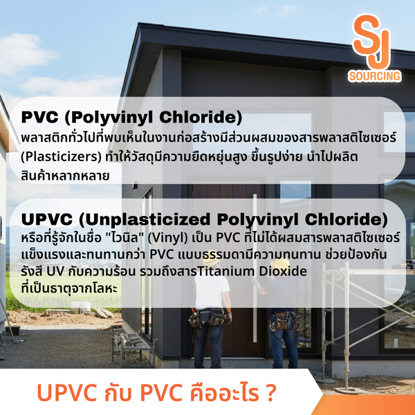 การเลือกวัสดุประตูบ้าน ส่งผลต่อความสวย ความปลอดภัย และอายุการใช้งานของบ้านค่ะ วัสดุพลาสติกอย่าง UPVC กับ PVC ได้รับความสนใจเพิ่มขึ้นต่อเนื่อง เพราะมีข้อดีหลายอย่างเมื่อเทียบกับวัสดุอย่างไม้หรืออลูมิเนียม หลายท่านยังสับสนว่า UPVC กับ PVC ต่างกันอย่างไร และควรเลือกแบบไหนสำหรับประตูบ้าน บทความนี้ S.J.Sourcing จะอธิบายความแตกต่างของวัสดุทั้งสองชนิด ให้ท่านเลือกประตูได้เหมาะกับการใช้งานจริง