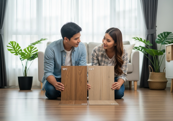 ถ้าต้องการติดตั้งกระเบื้องยางปูทับลามิเนตเดิม การเลือกใช้กระเบื้องยางแบบคลิกล็อคหรือประเภท SPC จะทำงานได้สะดวก เพราะไม่ต้องใช้กาว ทำให้การแก้ไขหรือรื้อถอนในอนาคตไม่กระทบต่อพื้นเดิมค่ะ