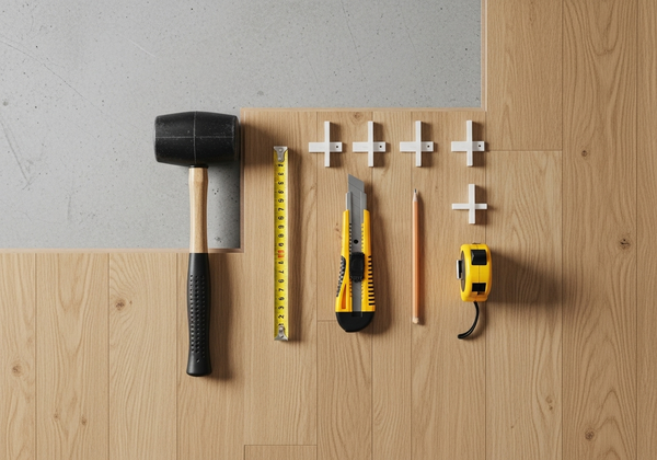 อุปกรณ์ที่จำเป็นในการปูกระเบื้องยางทับลามิเนตแบบคลิกล็อค ได้แก่