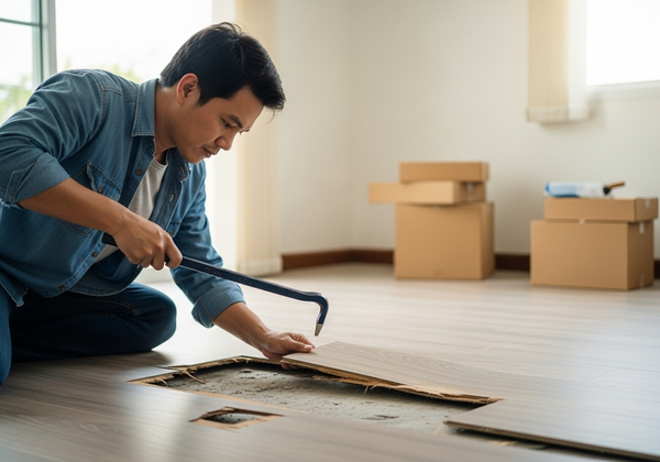 บางกรณี อาจไม่สามารถปูกระเบื้องยางทับลามิเนตเดิมได้ เช่น พื้นลามิเนตเดิมมีความเสียหายมาก มีการบวมน้ำ หรือมีปัญหาความชื้นสูง โดยมีวิธีแก้ไขดังนี้ค่ะ