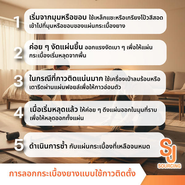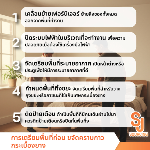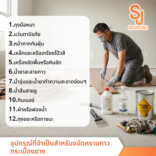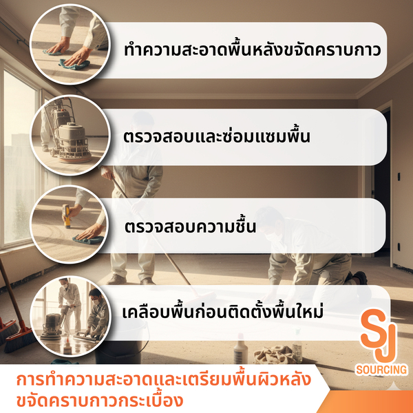 บทความนี้ S.J.Sourcing ได้รวบรวมวิธีการขจัดคราบกาวกระเบื้องยางและขั้นตอนต่าง ๆ ตั้งแต่เทคนิคการลอกแผ่นพื้นเก่าที่ถูกวิธีจนถึงการทำความสะอาดคราบกาวให้ทั้งหมด เพื่อให้การเตรียมพื้นผิวให้พร้อมสำหรับปูพื้นใหม่ค่ะ