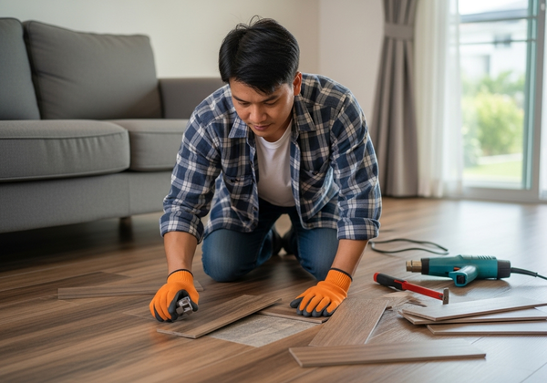 วิธีรื้อกระเบื้องยาง ขั้นตอนที่ต้องอาศัยความอดทนและเทคนิคที่ถูกต้องเหมาะสมกับชนิดของกระเบื้อง บทความนี้ S.J.Sourcing จะแนะนำขั้นตอนการรื้อกระเบื้องยาง ทั้งแบบติดกาวกับแบบคลิกล็อกด้วยตัวเอง พร้อมเทคนิคการลอกคราบกาวที่เป็นปัญหาหลังรื้อถอน เพื่อเตรียมพื้นผิวสำหรับการติดตั้งวัสดุปูพื้นใหม่ค่ะ