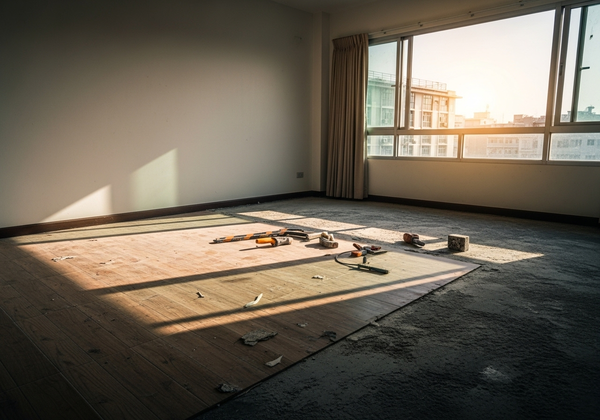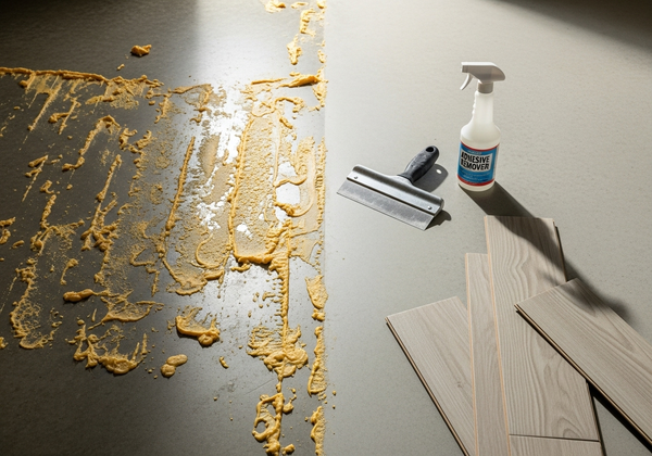 การกำจัดคราบกาวเป็นขั้นตอนสำคัญหลังรื้อเสร็จ เพื่อเตรียมพื้นสำหรับติดตั้งวัสดุใหม่