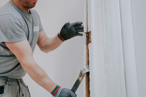 เริ่มต้นด้วยการถอดประตูออกจากวงกบเดิมก่อน ให้ถอดบานพับออก จากนั้นค่อย ๆ รื้อวงกบเก่าออกด้วยความระมัดระวัง เพื่อไม่ให้ผนังปูนเสียหายมากเกินไป ใช้สิ่วกับค้อนค่อย ๆ แซะวงกบออกจากผนัง ถ้าวงกบติดแน่นกับปูนมาก ให้ลองตัดเป็นส่วน ๆ ช่วยให้รื้อได้ง่ายขึ้นค่ะ