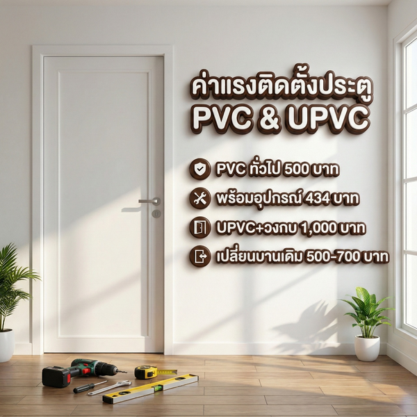 สำหรับราคาติดตั้งที่เฉพาะเจาะจงขึ้น ค่าแรงติดตั้งประตู PVC บานเดี่ยวพร้อมอุปกรณ์อย่างบานพับและลูกบิด ราคาอยู่ที่ประมาณ 434 บาทต่อบาน ส่วนประตู UPVC คือ ทางเลือกน่าสนใจสำหรับการติดตั้งพร้อมวงกบ ราคาอาจขยับขึ้นไปที่ประมาณ 1,000 บาทต่อบาน ถ้าเป็นบริการเปลี่ยนประตูบานเดี่ยวที่รวมการรื้อถอนของเดิมและติดตั้งลูกบิด ราคาอาจอยู่ประมาณ 1,000 บาทต่อบานเหมือนกันค่ะ