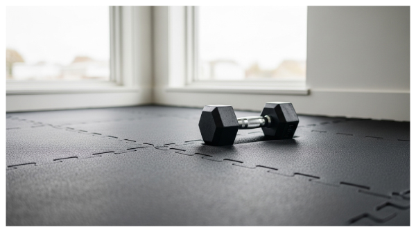 - ห้องออกกำลังกายในบ้าน แผ่นจิ๊กซอว์ปูพื้นช่วยป้องกันพื้นเดิมจากการกระแทกของอุปกรณ์และดัมเบล